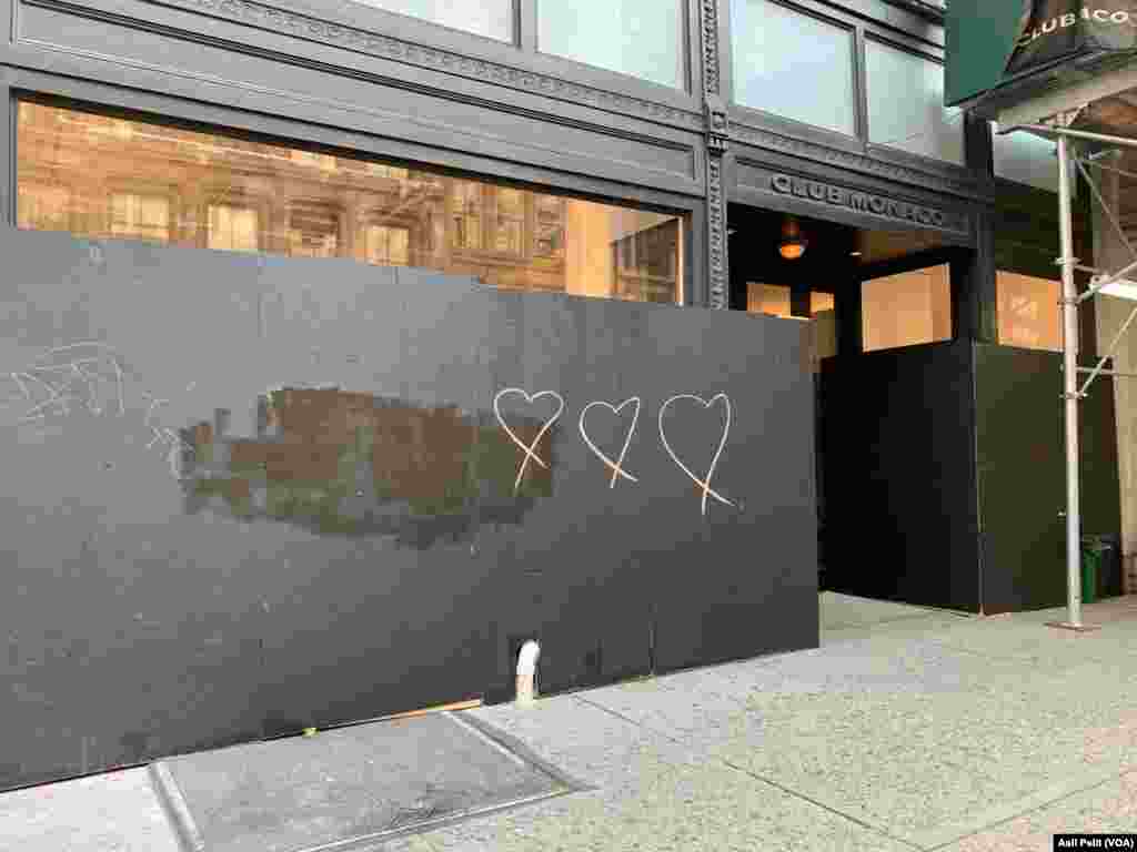 New Yorklu sanatçı Marco Santini, Bloomingdale’s mağazasının vitrinlerini sağlık çalışanlarına adarken, diğer sanatçılar New York’u terk edenleri eleştirmeyi, hatta bu eşitsizliği öne çıkarmayı amaçlayan grafitilerle SoHo’nun vitrinlerini renklendirmiş.