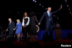 Obama 2008 yılındaki başkanlık seçimlerinde zaferini ilan ettiği memleketi Chicago’dan Amerikalılar’a son kez seslendiği konuşmasında, eşi ve kızları ile Başkan Yardımcısı Joe Biden’a teşekkür ederken gözyaşlarını tutamadı.