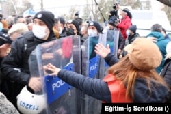 Eğitim İş Sendikası ve Eğitim-Sen öncülüğündeki öğretmenler, bugün Ankara'da özlük haklarını gerileteceği gerekçesiyle AKP’nin Meclis gündemindeki “Öğretmenlik Meslek Kanunu” teklifine karşı açıklama girişimlerinde bulundu, ancak sert polis müdahalesiyle karşılaştı.