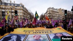 Fransa'nın başkenti Paris'te, 9 Ocak 2013'te uğradıkları saldırıda öldürülen PKK'lı 3 Kürt kadın Sakine Cansız, Leyla Şaylemez ve Fidan Doğan, ölümlerinin 10'uncu yılında düzenlenen bir yürüyüşle anıldı.