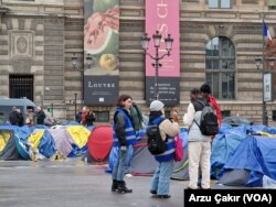 Louvre Müzesi'ni ziyaret etmeye gelen turistler de bu karmaşaya katılıyor. Turistlerin bir bölümü, Louvre'un önünde fotoğraf çektirmeye devam ederken, bazıları da göçmenlerin neden bu alana çadır kurduklarını anlamaya çalışıyorlar.