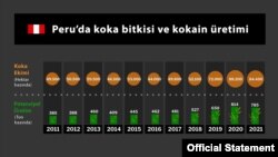 2023 Dünya Uyuşturucu Raporu’na göre kokainin hammaddesi olan koka bitkisinin yüzde 26’sı Peru’da ekiliyor. Koka ve kokain üretiminde Kolombiya’dan sonra gelen Güney Amerika ülkesinde resmi verilere göre yılda 400 ton, ABD Ulusal Uyuşturucu Kontrol Politikası Dairesi (ONDCP) verilerine göreyse 785 ton kokain üretiliyor.