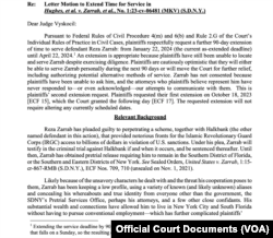 Davacı avukatları, “Amerikan Federal Hukuk Muhakemeleri Usulü Kuralları” uyarınca davacıların vekillerinin kendisini bulmak için ikinci kez mahkeme yargıcı Mary Kay Vyskocil’den 22 Nisan’a tarihine kadar ek süre talep etti. Yargıç Vyskocil, davacıların uzatma talebini kabul ederek, Sarraf’ın ABD’de bulunması için ek süre verdi.