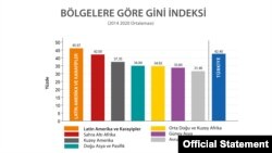 Bölgelere göre gelir eşitsizliğini ölçen Gini endeksinde 2014-2020 ortalaması en yüksek olan bölge 45,97 oranla Latin Amerika.