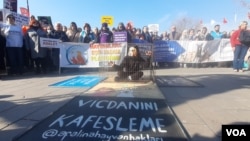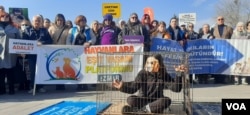 Anıtpark’ta toplanan hayvanseverler ‘Sokağıma dokunma’ ve ‘Onları korumak bizim hakkımız’ yazılı dövizler taşıdı. Bir hayvansever genç, miting alanındaki kafese girip hayvanlara yönelik şiddeti protesto etti.