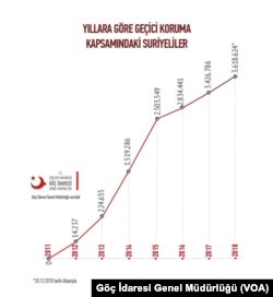 İçişleri Bakanlığı Göç İdaresi Genel Müdürlüğü’nün 2018 Aralık ayı verilerine göre Türkiye’de yaşayan Suriyeli sayısı 2012 yılında 14 bin 237 kişi iken bu rakam 2018 Aralık ayında 3 milyon 618 bin 624 kişiye ulaştı.