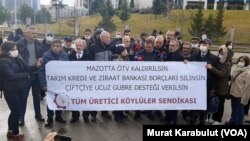 VOA Türkçe’nin sorularını yanıtlayan TMMOB Ziraat Mühendisleri Odası Başkanı Baki Remzi Suiçmez de “Yeterli beslenmek için yeterli üretim yapılmalı. Çiftçimiz diyor ki ‘biz üretmek istiyoruz.’ Üretmeleri için de girdileri kullanmaları gerekiyor. Bu girdiler ne? Tohum bugün yurtdışından geliyor. Mazotun özellikle yılbaşında gelen aşırı zamlarla fiyatı arttı. Yatlarda yüzde 1’e inmişken halen mazotta yüksek ÖTV ve Katma Değer Vergisi (KDV) kullandırılması çiftçinin traktör kullanamaması sonucunu doğuruyor. Toprağa yeterince gübre atamazsa çiftçi yeterince verim alamaz. Böyle bir ortamda gübrenin aşırı zamlanması ve döviz kurundaki düşüsün yansımaması çiftçinin toprağa gübre atamaması sonucunu doğurdu. Bugün enflasyon yüzde 36’larda (TÜİK verisi) açıklandıysa da Tarım Bakanlığı’nın ödeyeceği destek yüzde 12,5. Dolayısıyla desteklerin azaldığı ancak girdi maliyetlerinin arttığı böyle bir ortamda küçük çiftçinin kredi kullanması gerekiyor. Çiftçilerin somut önerisi var. Biz de bunu destekliyoruz. Kredilendirmede ana para beş yıl alındığı yıla göre eşit taksitte ödenebilmeli ve faizsizi silinmeli” sözleriyle ekonomik tabloyu anlattı.