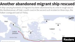 İtalya, ülkenin güney sahili yakınlarında mürettebatı tarafından terk edilen ve yüzlerce göçmen taşıyan gemiye el koydu.