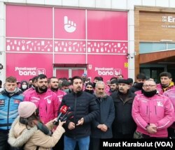 VOA Türkçe’ye neden eylem yaptıklarını anlatan kurye Volkan Morkoç da, “4 Nisan’da trafik kazası geçirdim, araç geldi bana vurdu, şirket yanımda olmadı. Biz bu kuryeliği yapmamıza rağmen yöneticiler maddi manevi yanımızda olmadı. Bunların düzeltilmesini ve bizlere insan muamelesi yapılmasını istiyoruz. Karda kışta, pandemide herkes evindeyken bizler dışarıdaydık” diye konuştu. Kurye Rıza Tek de, “Emeklerimizin karşılığını alamadık. Bu bugünlük sorun değil. Biz vasıfsız bir personel değiliz. Mobbinge kadar gidecek durumlar var. Uzak yerlere gönderimler, mesai yoğunluğu. Çalışmış olduğumuz firma elini taşın altına koymadığı sürece herhangi bir kazada bir güvencemiz yok. Tarafsız kazalarda hiçbir güvence yok, esnaf kurye olarak çalışınca” diye anlattı.