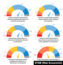 STGM ekibi, kimi zaman demokrasiye katkı sağlayan kimi zamansa çıkar odaklı yapılar olarak gündemde yer alan sivil toplum örgütlerine halkın bakışını “Türkiye’de Sivil Toplum Algısı Raporu” ile ortaya koymak istediklerini bildirdi. Rapor, 42 kentte ve 3 bin 40 kişi ile yüz yüze görüşmeler yapılarak hazırlandı.
