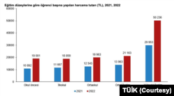 TÜİK verilerine göre öğrenci başına eğitim harcaması, 2021 yılında 15 bin 622 TL iken, 2022 yılında 25 bin 143 TL’ye yükseldi. Eğitim kademelerine göre değerlendirildiğinde, bu tutarın en yüksek olduğu kademe 50 bin 236 TL ile yükseköğretim oldu. Diğer kademelerde öğrenci başına eğitim harcaması, okul öncesinde 19 bin 1 TL, ilkokulda 18 bin 859 TL, ortaokulda 19 bin 963 lira ve ortaöğretimde 21 bin 163 lira olarak gerçekleşti.