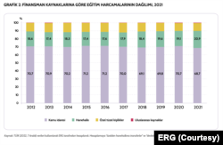 TÜİK verilerine göre eğitim harcamalarının tutarı 2022 yılında bir önceki yıla göre yüzde 69,3 artarak 587 milyar 438 milyon TL oldu. 2021 yılında eğitim harcamalarının GSYH içindeki payı yüzde 4,8 iken, 2022 yılında yüzde 3,9’a geriledi. Devlet tarafından yapılan eğitim harcamalarının GSYH içindeki payı ise bir önceki yıl yüzde 3,5 iken, 2022 yılında yüzde 3,1’e düştü.