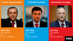 Erdoğan’ın rakipleri çatı aday Ekmeleddin İhsanoğlu ve Halkların Demokratik Partisi (HDP) adayı Selahattin Demirtaş ise, anayasanın çizdiği “kuvvetler ayrılığı” sisteminde bir değişiklik yapmama vaadinde bulunuyor ve aksi takdirde Türkiye’nin diktatörlüğe sürükleneceği uyarısında bulunuyor.