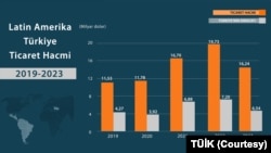 Türkiye İstatistik Kurumu (TÜİK) verilerine göre, Ocak–Mart döneminde Latin Amerika’dan yaklaşık 2 milyar 460 milyon dolarlık mal ithal eden Türkiye, bölgeye 1 milyar 745 milyon dolarlık ihracat yaptı.
