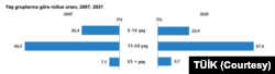 Çocuk yaş grubu olarak tanımlanan 0-14 yaş grubundaki nüfusun oranı yüzde 26,4'ten yüzde 22,4'e gerilerken, 65 ve daha yukarı yaştaki yani yaşlı nüfusun oranı ise yüzde 7,1'den yüzde 9,7'ye yükseldi.
