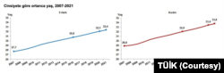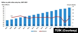 Yıllık nüfus artış hızı 2020 yılında binde 5,5 iken, 2021 yılında binde 12,7’ye yükseldi.