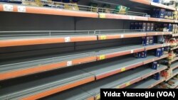 Ankara'da market raflarında ise makarna, kuru bakliyat, çamaşır suyu gibi temizlik malzemeleri ve kağıt mendil kalmadığı görüldü.