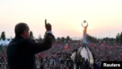 Erdoğan’ın Saray’daki camide sabah namazının kılmasının ardından düzenlenen açılış törenine on binlerce kişi katıldı.