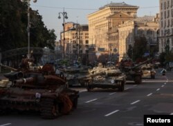 Halka açık etkinlikler, Rusya’nın olası hedefi haline gelebileceği endişesiyle yasaklandı. Ancak Kiev'in merkezinde savaşta vurulan Rus tankları sergilendi.
