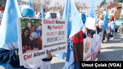 Başkonsolosluk önündeki eylemde VOA Türkçe’ye konuşan Medine Nazimi, başta kadınlar ve çocuklar olmak üzere Uygurlar'ın çok kötü şartlar altında Çin’deki kamplarda tutulduğunu ifade etti. Nazimi, “Kadınlarımızın onuru ayaklar altında ezilirken ben onların sesi olarak buraya geldim. Onların hislerine tercüman olarak dünyaya haykırıyorum. Biz 21. yüzyılda insanlık dışı muamelelere maruz kalırken siz bu zulme sessiz mi kalacaksınız? Hani kadın hakları vardı, çocuk hakları vardı, insan hakları vardı? Sizin bu haklarınız biz Uygurlar'a gelince geçerli değil mi? Tüm dünya liderlerine, dünya insan hakları örgütlerine sesleniyorum. Biz de kadınız, biz de anneliğimizi onurumuzla yaşamak istiyoruz. Gelin el ele olalım. Çin’in bu zulmüne karşı dimdik duralım. Lütfen sesimize ses olun” dedi.