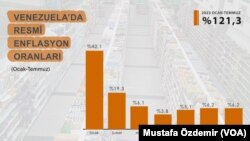 Ekonomik krizin devam ettiği Venezuela’da Ocak-Temmuz resmi enflasyon oranı, yüzde 121,3 olarak açıklandı. Venezuela Merkez Bankası (BCV) verilerine göre, Temmuz enflasyonunun yüzde 6,2 olarak açıklandığı ülkede, geçen yıl Ocak ayında 1 yıl boyunca aylık enflasyon oranının yüzde 50’nin altında seyretmesinin ardından hiper enflasyon koşullarından çıkılmış olsa da Venezuela, dünya enflasyon liginde ilk sırada yer almaya devam ediyor.
