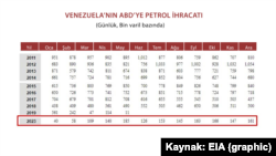 EIA verilerine göre geçen yıl ABD’ye yaptığı petrol ihracatı, her ne kadar 2018’deki miktardan yüzde 73,74 daha az olsa da Venezuela, dünyanın en çok büyük petrol alıcılarından olan ABD’ye, geçen yıl en çok petrol ihracatı yapan sekiz ülke arasına girdi.