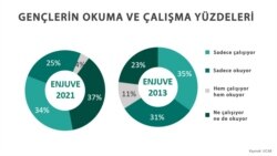 Ulusal Gençlik Araştırması (Enjuve 2021) adlı araştırma, ülkede yaklaşık 6 milyon 817 bin gencin yüzde 45’inin iyi bir gelecek için eğitimin gerekli olmadığını düşündüğünü ortaya koyuyor. Araştırmada 2013 yılında herhangi bir eğitim kurumuna kayıtlı 18 ile 24 yaş arasındaki gençlerin oranı yüzde 40’ın üzerindeyken bu oranın bugün yüzde 20’nin altına düştüğü; son 8 yılda toplamda 1 milyon 240 bin öğrencinin eğitimini yarıda bıraktığı kaydediliyor.