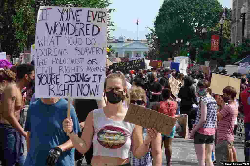 Beyaz Saray karşısında, ismi 'Siyahların hayatları önemlidir' anlamına gelen 'Black live matter' sloganıyla değiştirilen caddede büyük bir kalabalık vardı