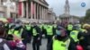İngiltere'de aşı ve Corona tedbirlerine karşı çıkan grubun protestoları devam ediyor. Trafalgar Meydanı'ndaki protestoculara polis sert müdahale etti